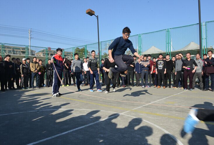 员工正在举行趣味运动会,以这种特殊的形式迎接新年。