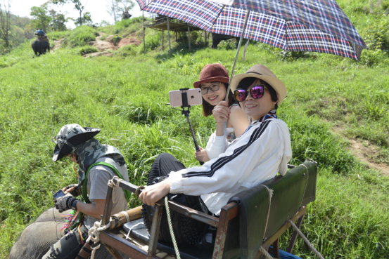 来到清迈,骑大象来趟丛林探险是绝对不能缺少的重头戏,一般两人共乘一只大象,并有专业象师随行。大象上坡和下坡的时候,走的都是淤泥路,所以大家紧紧地抓住扶手,时时担心自己会掉下来。象队中,有只叫王宝强的大象很狡猾,有只叫Lady Gaga的大象走得慢悠悠地,还有只大象不爱跟队伍走,专爱挑别人不走的有难度的路,让坐在上面的人备感惊险刺激。 在大象训练营,大家观看大象表演。在训象师的指挥下,大象除了会跳舞、踢足球、骑车、站立、鞠躬、戴摘帽子,还会自由随性挥表演独特的绘画天份,精彩的表演让在场的观众掌声不断、笑声不断。而后大家前往乘坐竹筏,一路上观赏宁静的山谷河川及周围森林美景,河水不深,时而溅起水花,撑来漂去,好不悠闲。