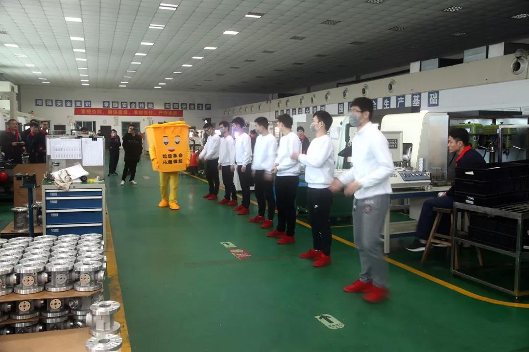 2018年1月11日,一场别开生面的环保快闪秀活动在天信厂区上演。正当员工们在自己的岗位上有条不紊工作时,金工车间空地上突然响起了时尚动感的曳步舞音乐,只见八位带着灰色口罩、穿着统一衣服的天信文艺俱乐部成员从工作岗位上来到空地中间,配合着音乐激情热舞,炫动全场。中间还有一位萌萌的、扮演垃圾桶的党员志愿者,向围观的员工作垃圾分类的宣传。