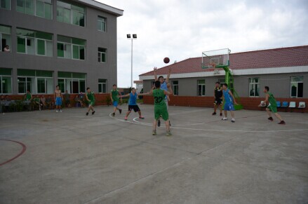 参观后,一场军民篮球赛随即激烈上演。双方球员本着“友谊第一,比赛第二”的原则,在赛场上奋力拼搏、积极进攻、全力防守、默契配合,共同为在场观众奉献了一场精彩的比赛,最后比分为87:83,天信队以微弱的优势胜出。